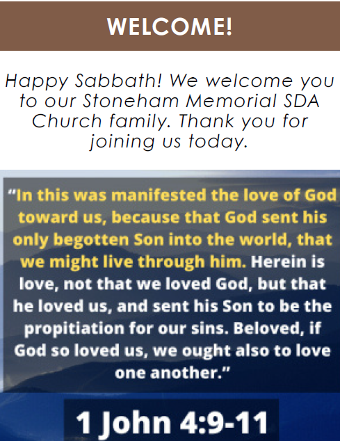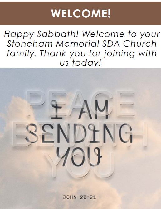 Welcome Sharon WilsonWorship in Singing Andrew ChristiansenOpening Song #340, "Jesus Saves”Children’s Story Rebecca GomesWorship in Giving Aloys GomweGarden of Prayer…